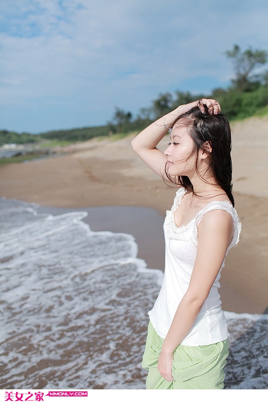 海边拍的90后酥胸美女卖萌写真(4)