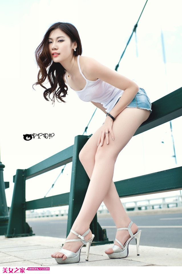 公路桥上的极品吊带衫美女(3)