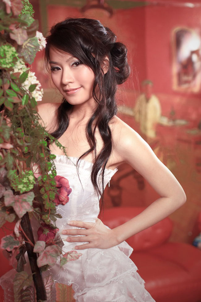 摄影棚里花藤下漂亮的美眉