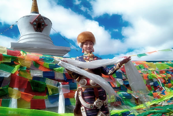 西藏大草园上的哈达美女(3)