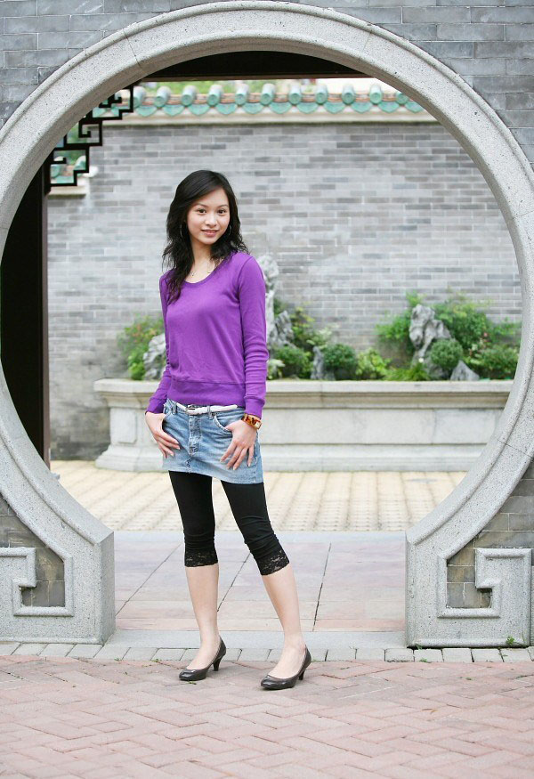 大美女迷人的紫色短裙装