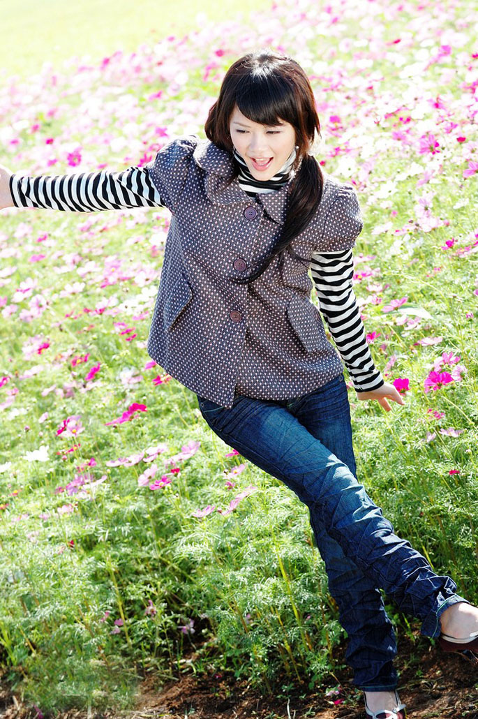 在花儿的海洋中自由玩耍的小女生(10)