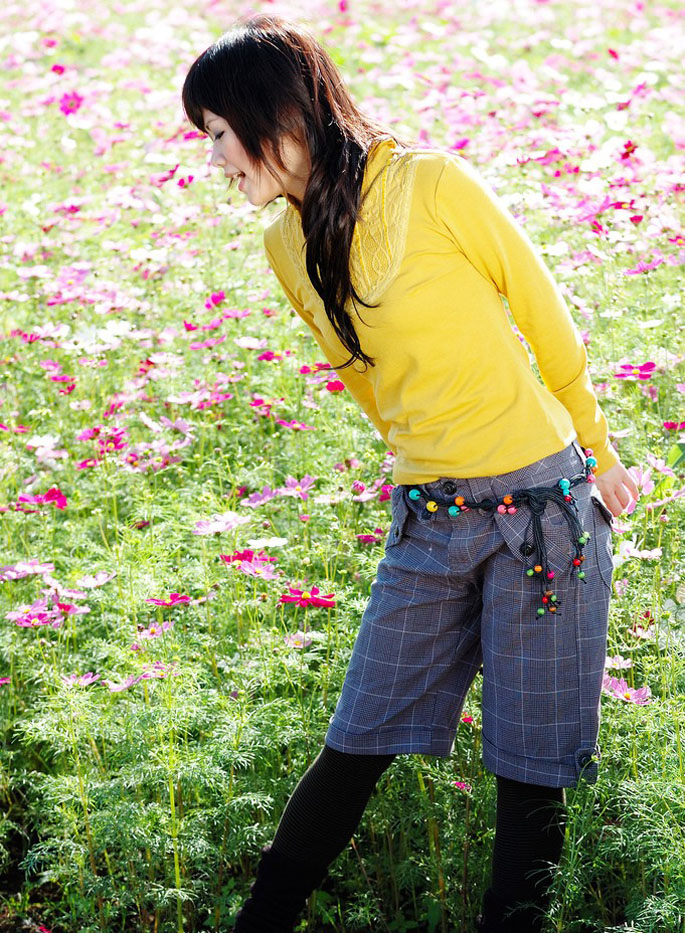 在花儿的海洋中自由玩耍的小女生(13)