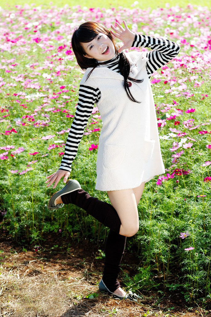 在花儿的海洋中自由玩耍的小女生(15)