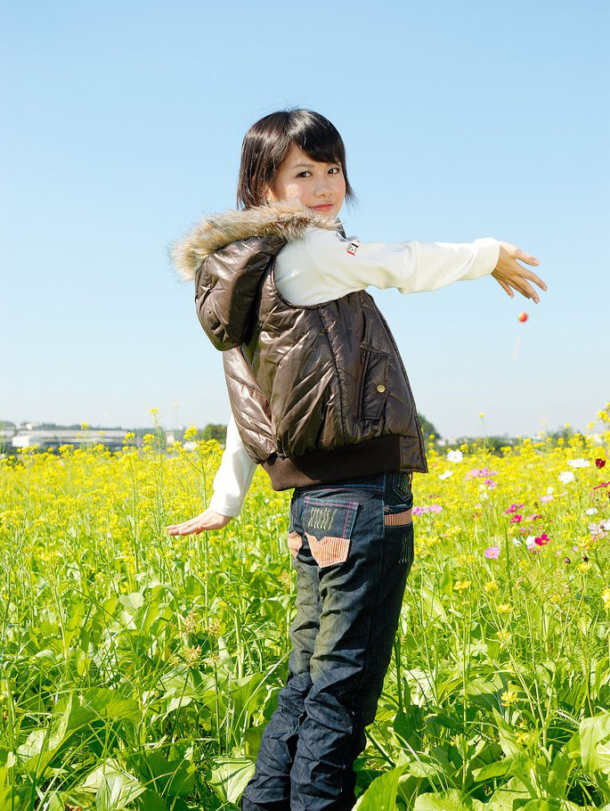 在花儿的海洋中自由玩耍的小女生(4)