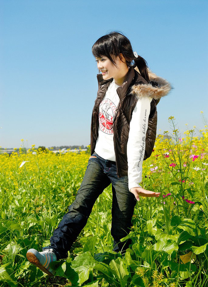 在花儿的海洋中自由玩耍的小女生(5)